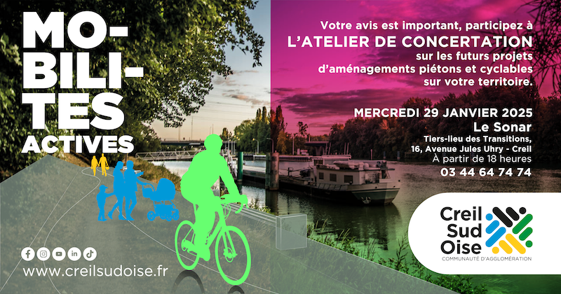 merc29jan18h00merc19h30EvènementAtelier de concertation piétons, vélos dans l'ACSOVenez vous exprimer sur les futurs projets de l'agglo18h00 - 19h30(GMT+01:00) Le Sonar - Tiers Lieu des Transitions, 16 Av. Jules Uhry, 60100 Creil